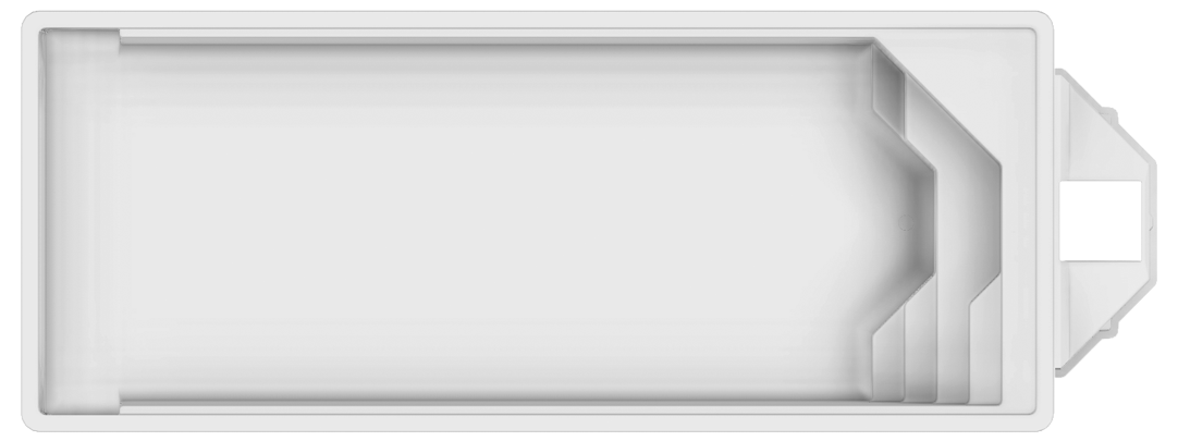 Durch das klare Stufenkonzept und die gerade Linienführung wirkt der Pool geräumig und sorgt außerdem mit der Sitz- und Massagezone im Stufenbereich für viel Komfort und Erholung.